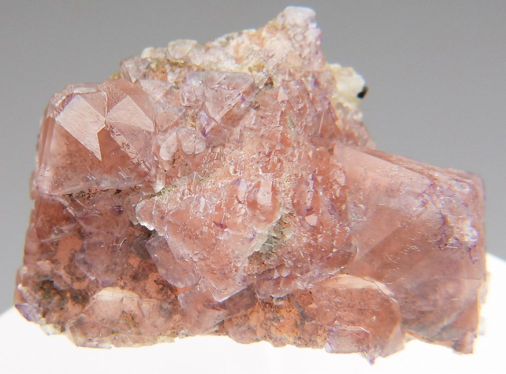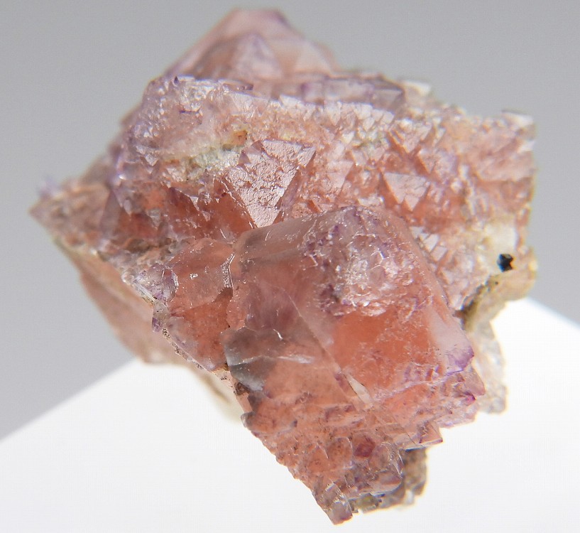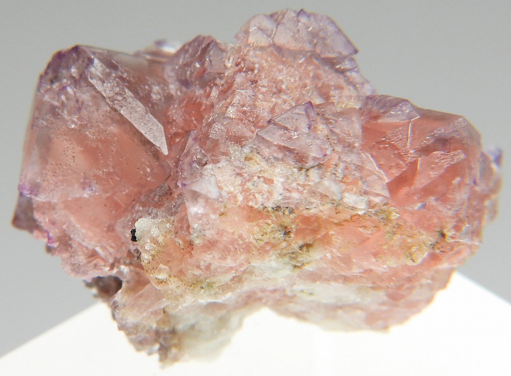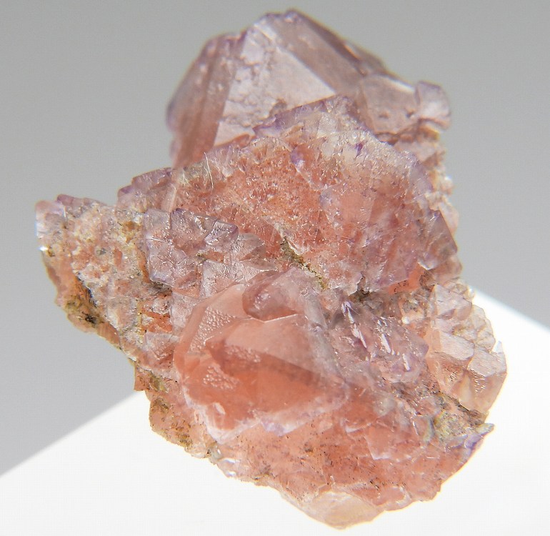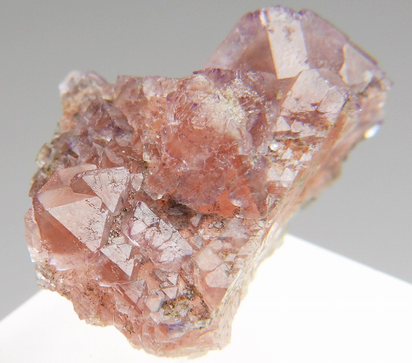 チェリーピンクの端正な八面体結晶群。この産地独特のパープルが入っております。