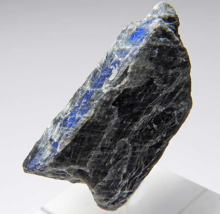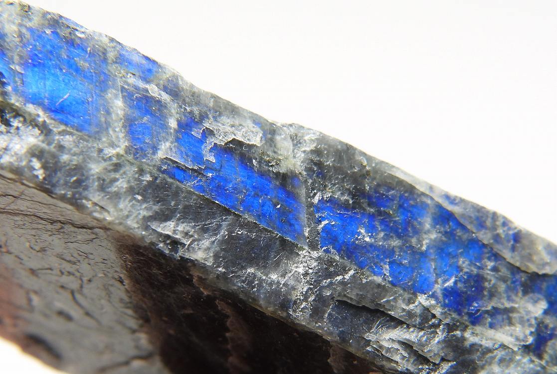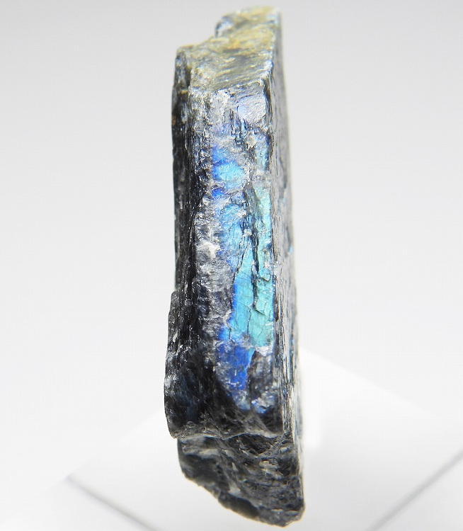 フィンランド産スペクトロライト。劈開面において鮮やかなシラーが見られます。未研磨品。
