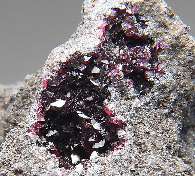 空隙に成長した菱コバルト鉱の綺麗な結晶群です。