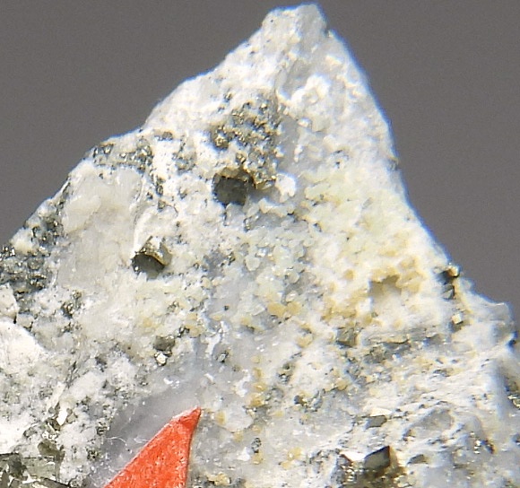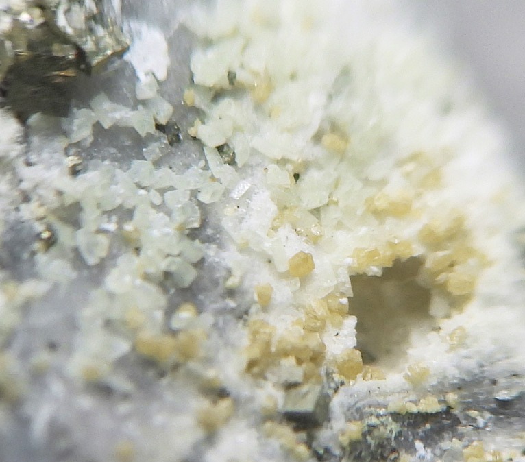 空隙に球状~ぶどう状成長したコルベック石の結晶群。非常に珍しいScのリン酸塩鉱物です。