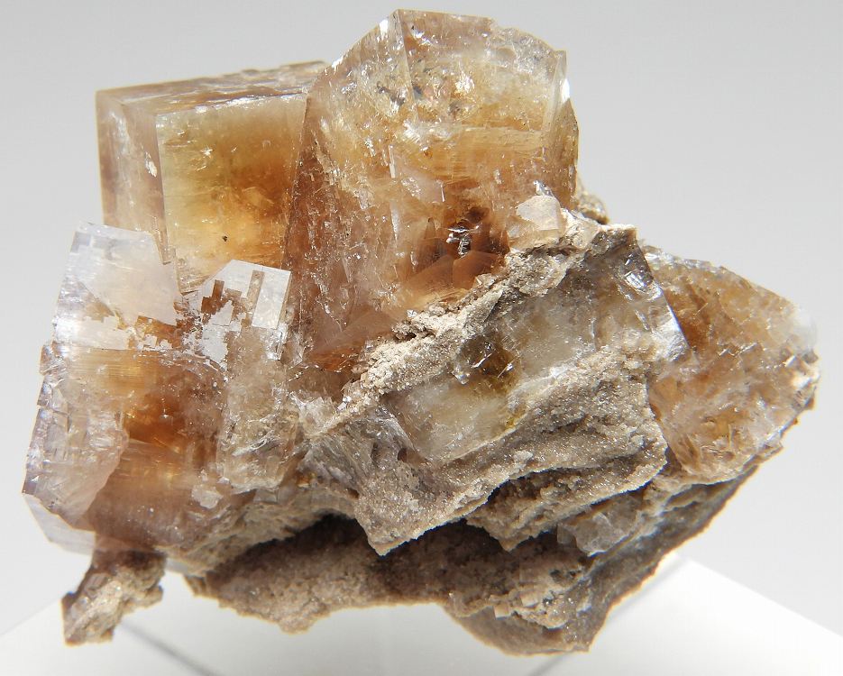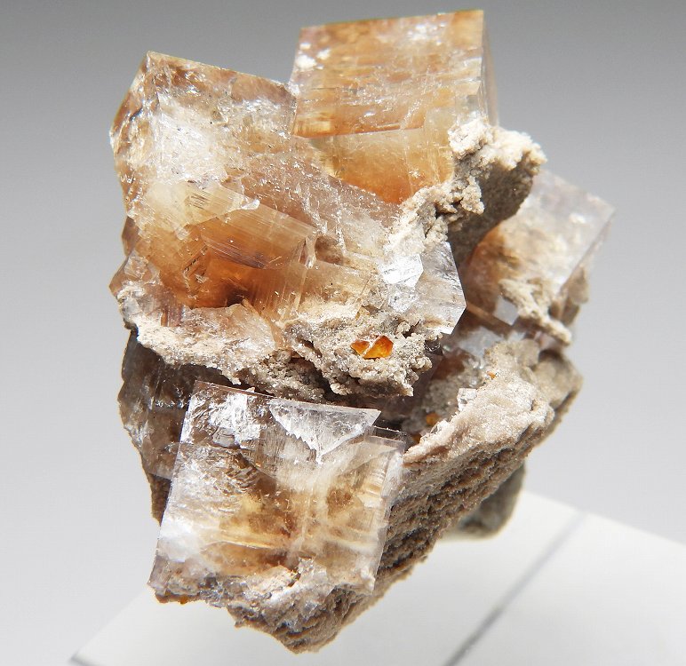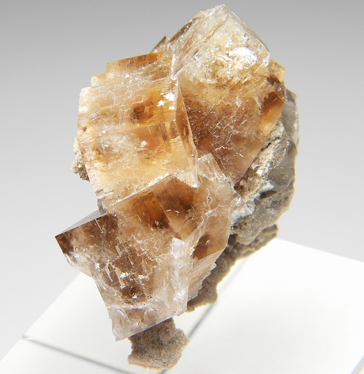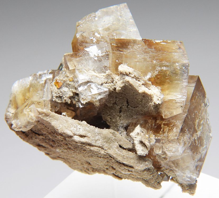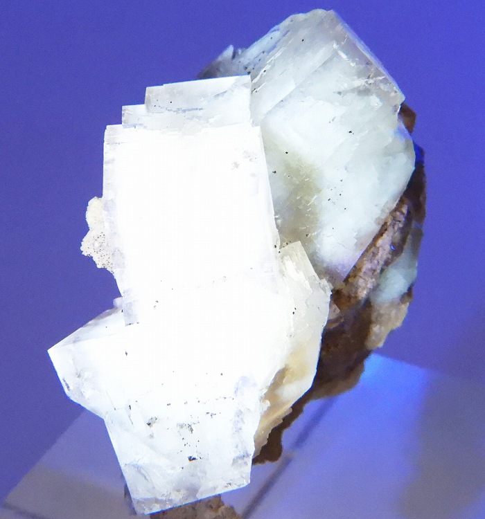 アンバーイエローの美しいフローライト。紫外線長波で明るい白色系の蛍光を発します。