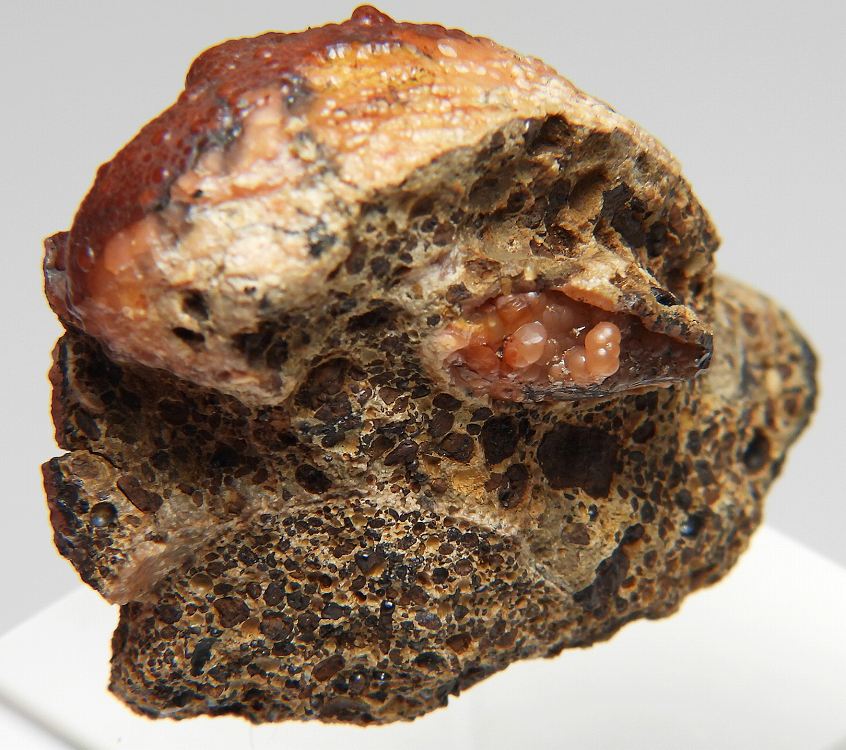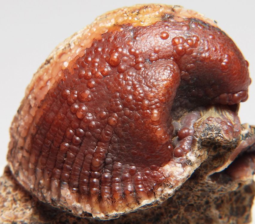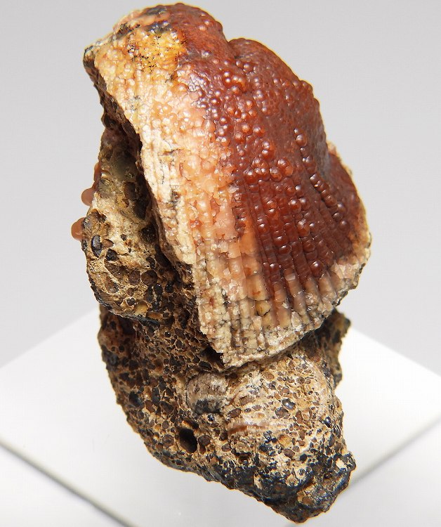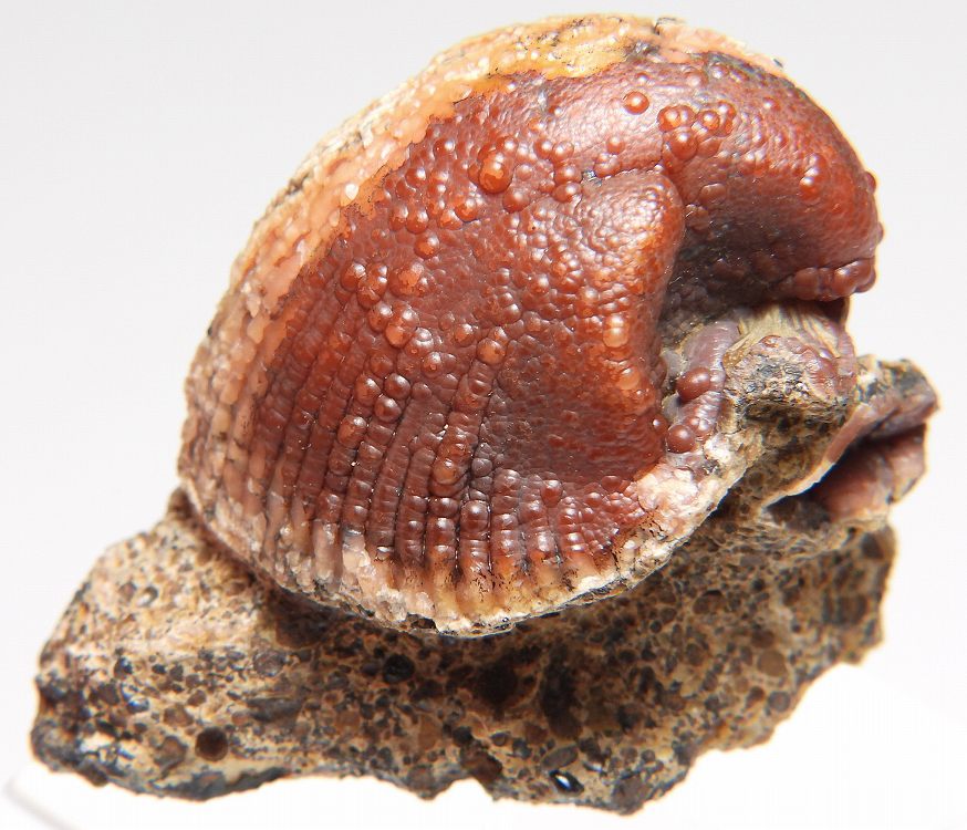 クリミア半島のいくつかの産地から化石に伴ったロードクロサイトを産することが知られます。貝化石を置換したロードクロサイトの美しい標本です。
