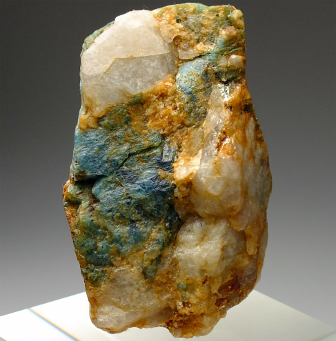ベリルの仮晶として結晶形状を残したままの標本。濃色ブルーのユークレースです。