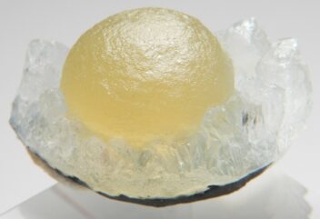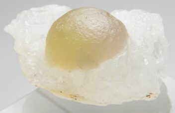 水晶に伴った黒い八面体結晶群。ドイツの漆黒フローライトと同様に実際は大変濃いパープルの結晶です。