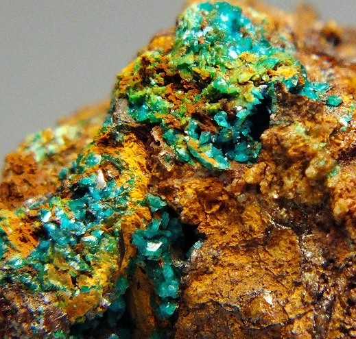 大変希少なCuとAlの含水砒酸塩鉱物です。青~青緑色の楔状結晶で産します。得難いリッチな結晶群。原産地標本。