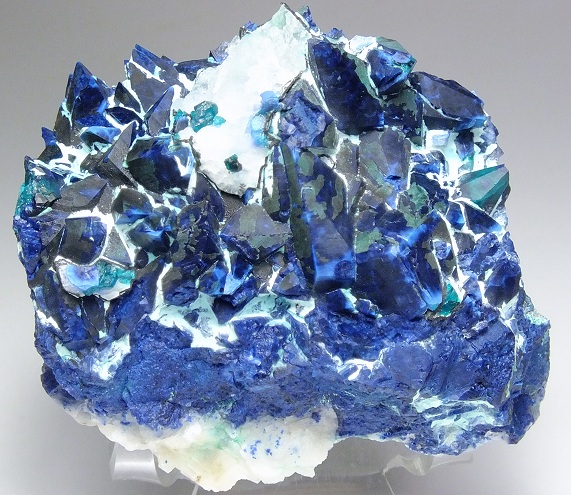 翠銅鉱を置換したシャッタカイトの結晶群。カルサイト→翠銅鉱→シャッタカイトの順で置換されたとされます。大きく成長した大変美しい標本です。キャビネットサイズ。