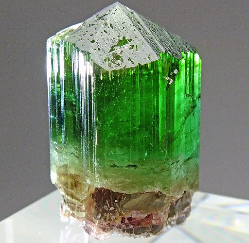 極めて透明度の高いバイカラーの結晶。大きく成長した美品です。