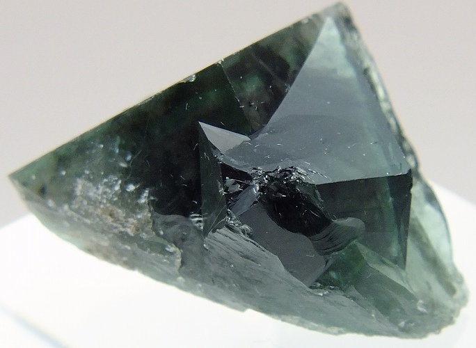モスグリーンの貫入双晶群です。太陽光と紫外線長波で蛍光します。