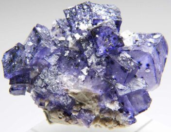 エルムウッド産の蛍石(フローライト/Fluorite/ほたる石)は、アメリカ合衆国テネシー州スミス郡に位置するエルムウッド鉱山(Elmwood Mine)から産出する標本です。濃い紫色や青紫色を主体とした高い透明度の結晶が特徴で、カルサイトやスファレライト、重晶石などとの共生標本として世界的に知られています。立方体結晶やステップ状に成長した結晶面を持つ標本も多く、色合い・透明感・共生関係が揃ったエルムウッド産フローライトは、コレクターアイテムとして特に人気の高い産地のひとつです。