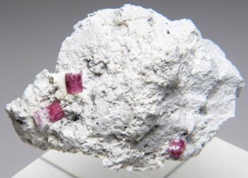レッドベリル(Red Beryl)は、一般式 Be₃Al₂Si₆O₁₈ を持つベリル(Beryl/緑柱石)グループのうち、マンガン(Mn³⁺)を含むことで赤色を呈する非常に希少な変種です。結晶系は六方晶系で、柱状〜短柱状の小さな結晶として産出し、濃いピンク〜深紅色の色調を示します。産地は主にアメリカ合衆国ユタ州のリオグランデ流紋岩中(ワーワー山地周辺など)から知られ、限定された環境でしか形成されないことから産出量がごく少ないベリルとして位置づけられています。その希少性と独特の赤色から、宝石質のものはジュエリー用途でも知られますが、鉱物コレクターにとっても重要なコレクション標本のひとつです。
